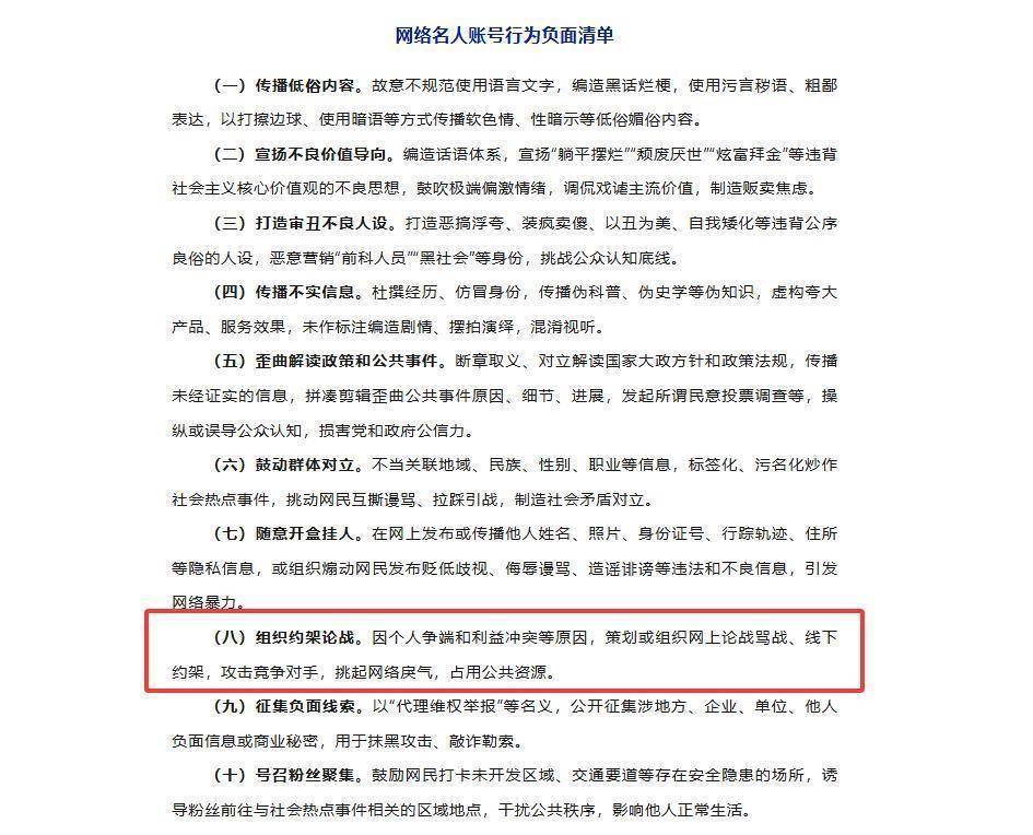 据新黄河报道,16日21时50分许,记者从罗永浩方面有关人士确认,@罗永浩的十字路口以及@西贝贾国龙两个账号均被禁言。22时19分,新浪微博CEO王高飞发博表示:“以后想论战,应该还是需要通过媒体采访的方式来进行。”他还附上一则《关于规范网络名人账号行为管理的通知》链接。其中,网络名人账号行为负面清单第八条是组织约架论战。因个人争端和利益冲突等原因,策划或组织网上论战骂战、线下约架,攻击竞争对手,挑起网络戾气,占用公共资源。