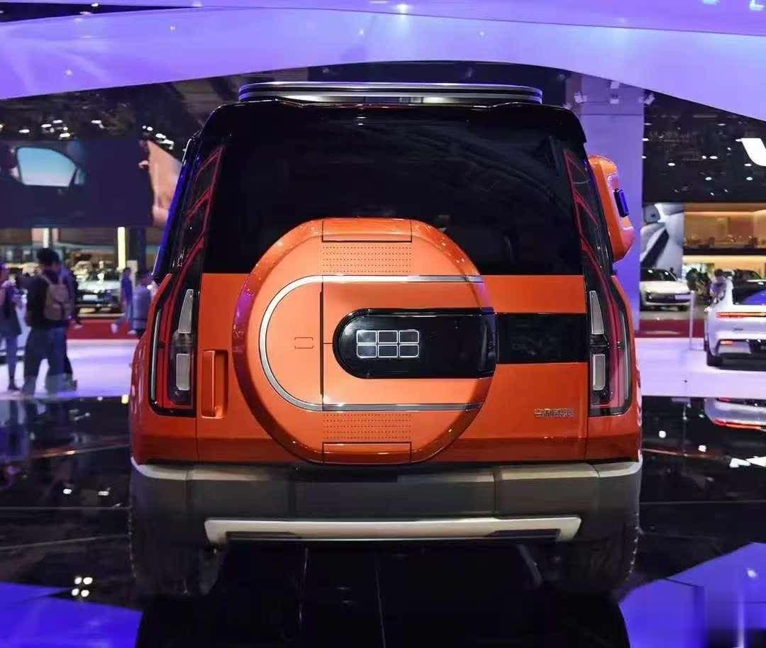 吉利银河战舰的车身轮廓方方正正,采用传统样式门把手,前后翼子板的隆起,勾勒出肌肉感,车身周围的黑色包围不仅提供防护功能,也增强了视觉上的越野感,车顶平台和车尾小梯子则为户外探索增加了实用性,尾部采用侧开式尾门和外挂式备胎,尾灯则呈现出“天宫星轨”图案,将中国传统文化元素融入硬派设计语言。