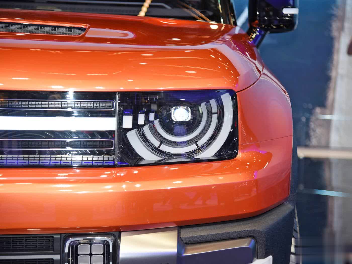 外观方面,吉利银河战舰采用了全新设计语言,前脸格栅与左右熏黑大灯相连,中间硕大的车标Logo很醒目,灯腔内部配有透镜,眼神坚毅,据悉前大灯设计灵感源自古代“浑天仪”,光圈点亮后科技且深邃,而保险杠宽大厚重,中间还留有四点式光源,而整个车头看起来富有力量感,与路虎卫士等经典硬派SUV有着相似的气质。
