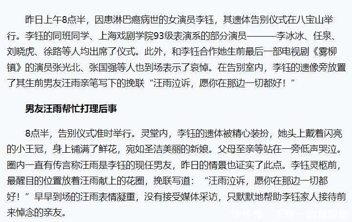 当李钰的追悼会举行,大家才知道他们是恋人关系。