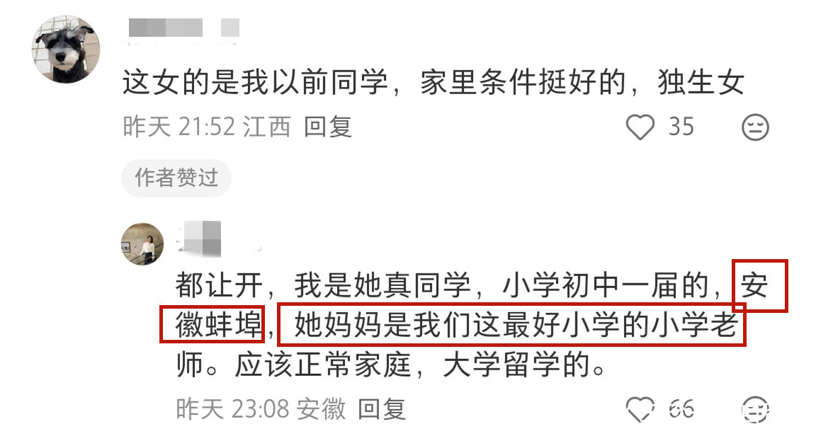 小学同学说苏璨是安徽蚌埠人,她母亲是蚌埠当地最好的小学的一名老师。
