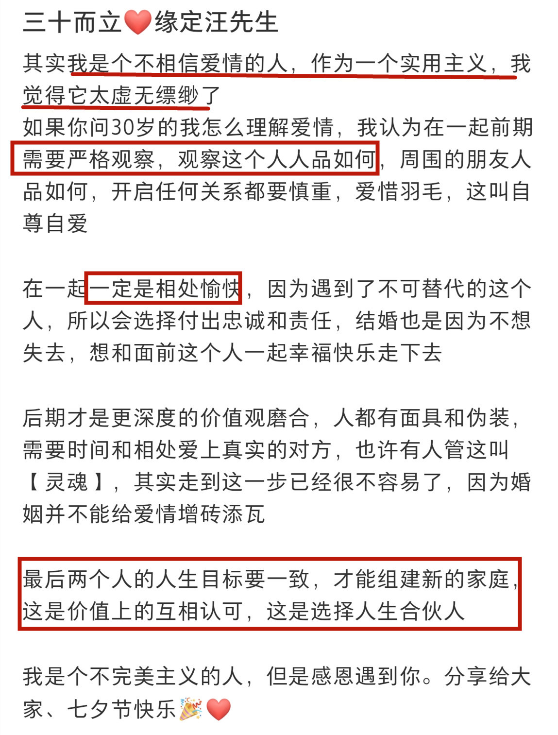 最重要的因素其实藏在苏璨发布的帖文里,那便是“相处愉悦,人生目标一致,价值上互相认可”。