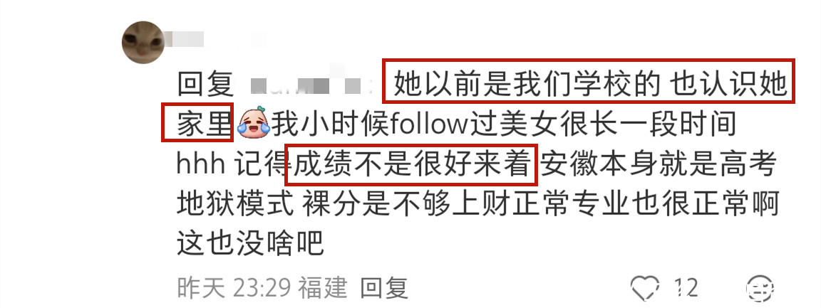一位高中校友则爆料说因为苏璨长得漂亮,她曾关注过她一段时间,该校友透露苏璨高中学习成绩不是很好。