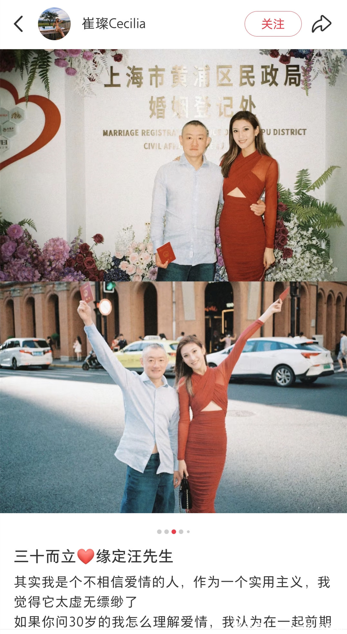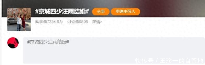 汪雨结婚的消息由她的妻子苏璨在七夕这天在个人社交账号上公布。